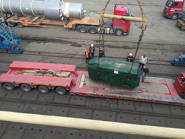 3900 x 1300 x 1300 mm.; 40,0 tn. with accessories were delivered "door-to-door" from SHANGHAI, CHINA to Taman', Russia.