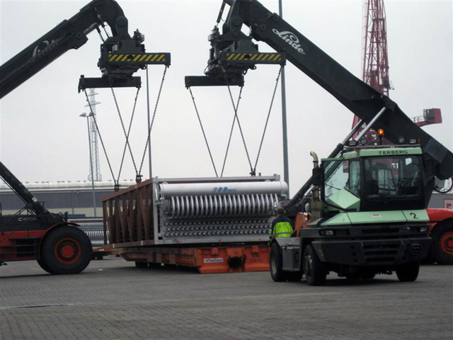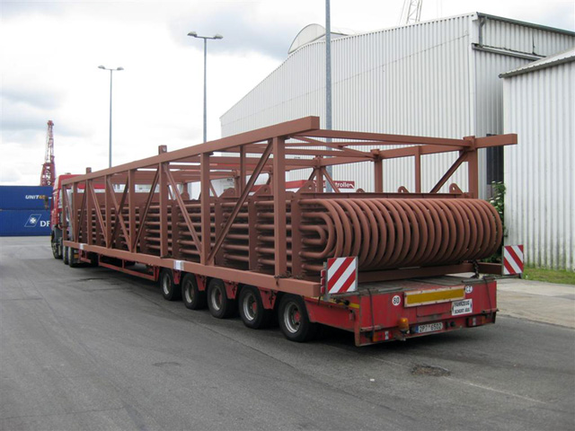 4 Паронагревателя весом более 50-ти тонн каждый и шириной более 4-х метров были доставлены из Чехии автотранспортом в немецкий порт.