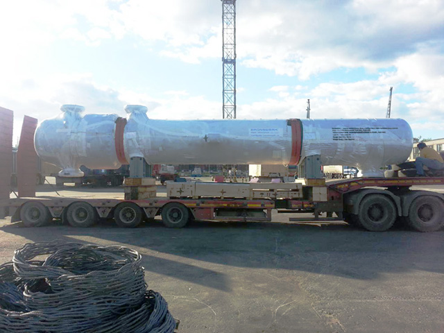Два теплообменника весом 43 тонны каждый были доставлены из Чехии через порт г. Санкт-Петербург в Оренбургскую область.